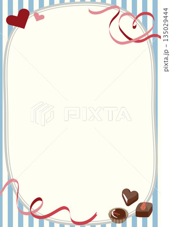 帶禮物、巧克力和鮮花的情人節心形絲帶框_red_no text