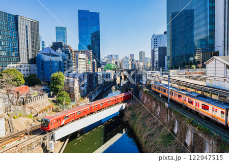中央線,總武線和丸之內線附近聖橋的御茶之水鐵路場景