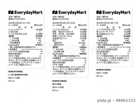 便利商店的真實虛擬收據 一套降低稅率、常規稅率和折扣變化