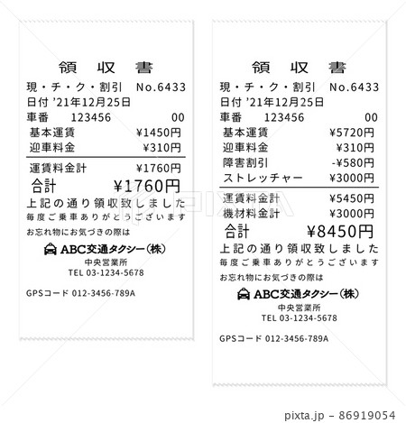 現實的出租車收據收據一套定期和長期的出租車接送服務