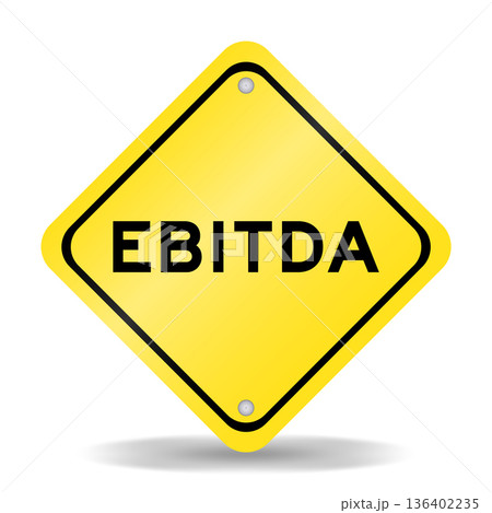 Yellow color transportation sign with word EBITDA (abbreviation of earnings before interest, taxes, depreciation and amortization) on white background