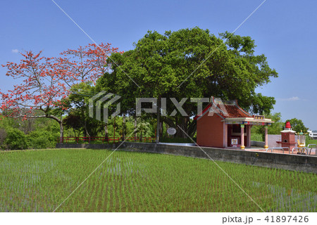 農村 土地公廟 農田 水稻