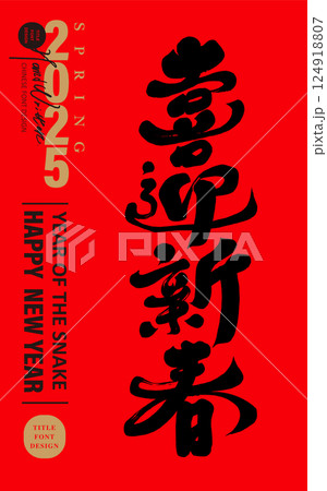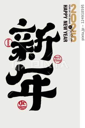 “新年”,農業新年的常用術語,春季使用的寬幅年卡,新年賀卡和節日慶祝設計,改編的書法標題字符,展覽和歡樂