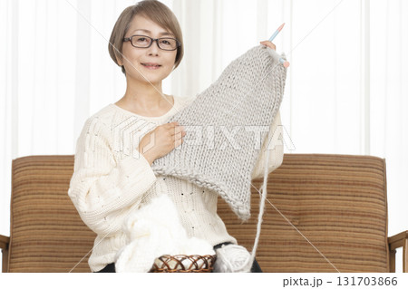 毛線球和針織圍巾的合影