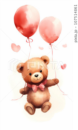 手绘卡通可爱的拿着红色气球的小熊插画