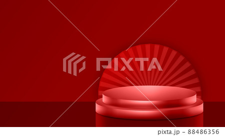 红色3D渲染中国风几何电商静物展示台