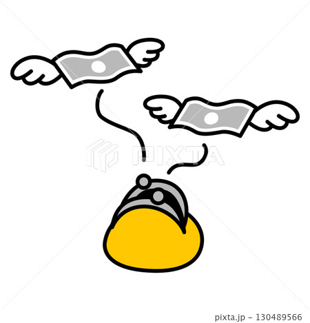 金錢長出翅膀飛走的線條畫插圖