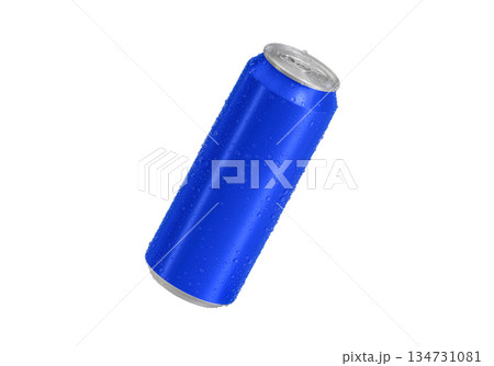Blue Aluminum soda can with water drops isolated on white background