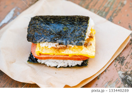 黑色背景下拍攝的石板板上的垃圾郵件 musubi