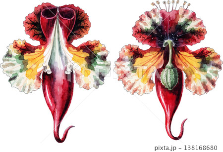 Watercolor Illustration of Exotic Aristolochia Flowers