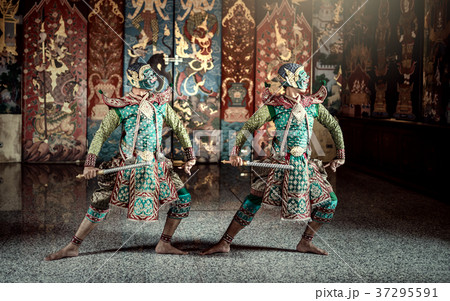 Khon or traditional Thai classic masked from the Ramakien characters action of traditional dance