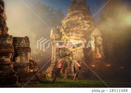 Thai ancient literature play of Ramaya called pantomine Rama or Vishnu ready to fight with king of giant