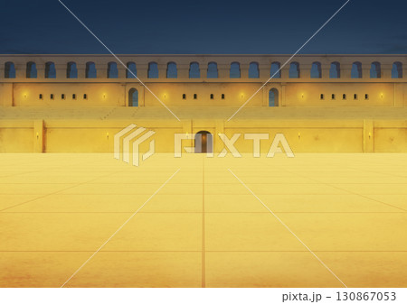 燈光照射在類似古羅馬神殿的柱子上的風景