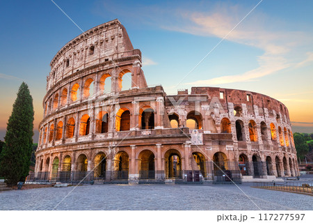 Coliseum at sunrise, summer view without people, Rome, Italy