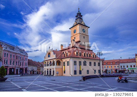 從羅馬尼亞特蘭西瓦尼亞布拉索夫黑塔看老城、黑教堂和通帕山的城市景觀