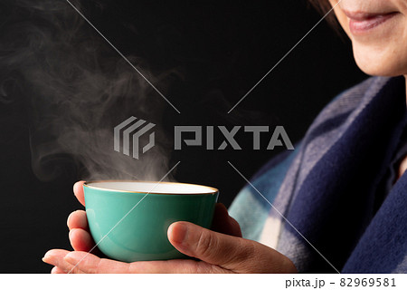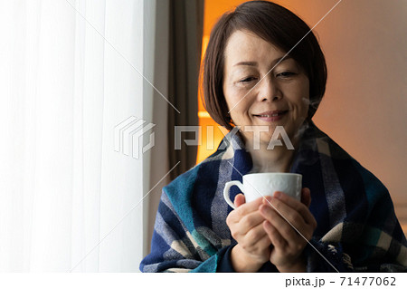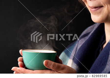 一位微笑的阿拉菲夫女人穿著外套暖手