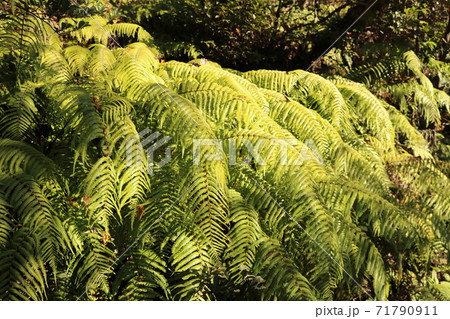 生長在大阪市片野市星田圓地徒步路線上的蕨類植物(靠近星星的搖擺,夏天)