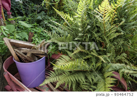 Wild fern in the forest near Moscow. Polypodiophyta. Front view.