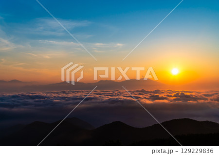從長野縣上田市美原看到的秋季雲海日出