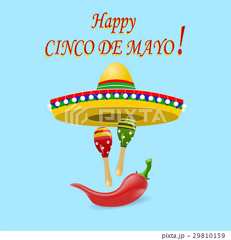 Cinco de Mayo inscription in the center. Sombrero