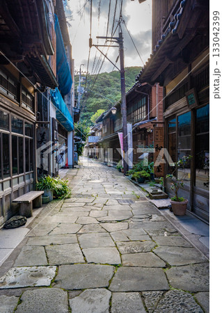 水彩風格的三保關青石鋪成的街道 圓成寺 島根縣松江市