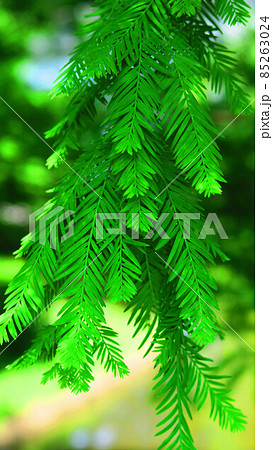公園和lakushou的年輕葉子和新鮮綠樹的美里