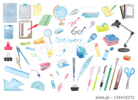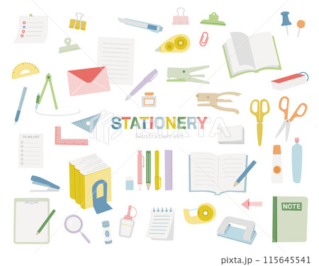 插圖素材文具套裝書寫用具辦公用品圖標學校設備矢量
