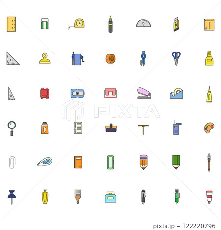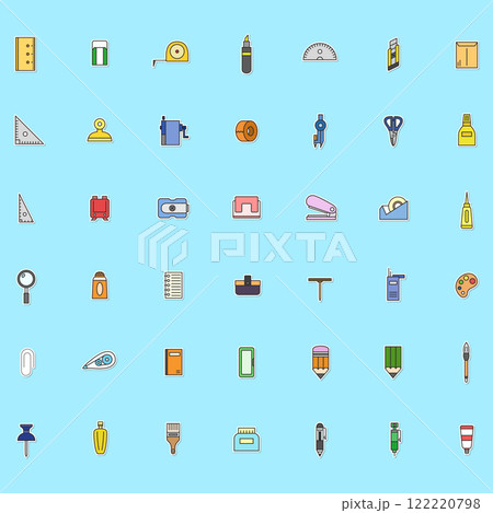 文具圖標集 簡單的書寫用具 插圖 文具筆 文檔 筆記本書