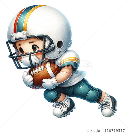 American football Player in action clipart watercolor. Ai Generate