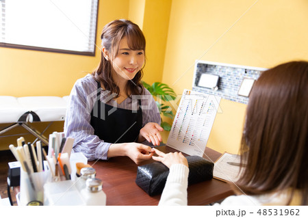 美甲師和亞洲女性在美甲沙龍討論設計選擇