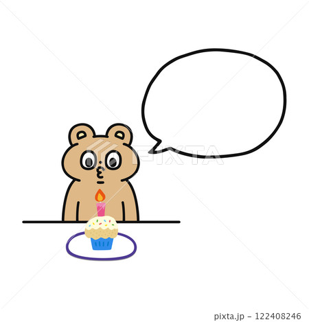 紙杯蛋糕、滑稽的熊和語音氣泡線畫