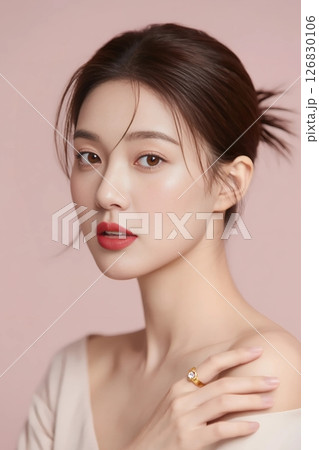 一位年輕美麗的亞洲女模特兒的美容/時尚肖像,她的皮膚像女演員一樣美麗