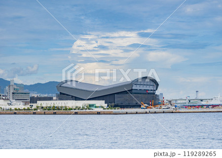 從神戶港/遊船看到的美利堅公園正在建造的新競技場和神戶市