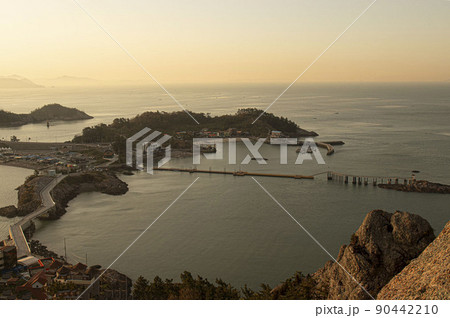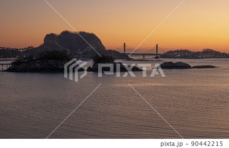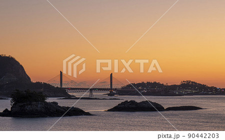 從岡山縣笠岡市高山白石島山頂看到的橋里島