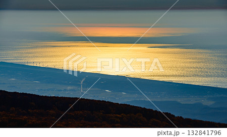 從鳥海藍線保立停車場展望台眺望稻倉山和日本海,秋田縣