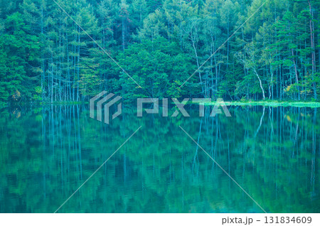 山形縣鳥海山腳下,神秘的丸池池,擁有翡翠般湛藍的池水。