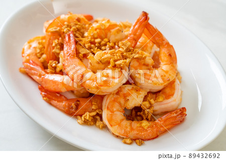 fried shrimps or prawns with garlic
