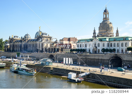 Huge dome of Frauenkirche Lutheran Church of Our Lady dominating the skyline of Dresden, Saxony, Germany
