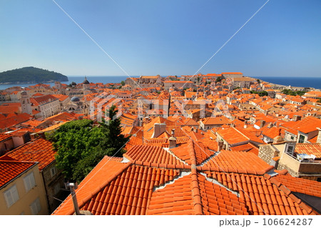杜布羅夫尼克,克羅地亞的世界文化遺產,亞得里亞海的明珠。從城牆上看老城區,其明亮的橙色屋頂