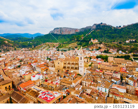 Collegiate Basilica of Xativa aerial panoramic view, Spain