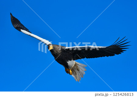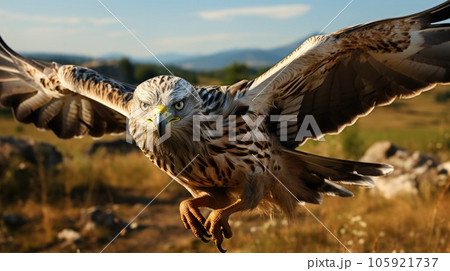 A majestic eagle soars high in the sky. Its wings spread wide, showcasing striking patterns. The beauty of nature is truly captivating. Generative AI