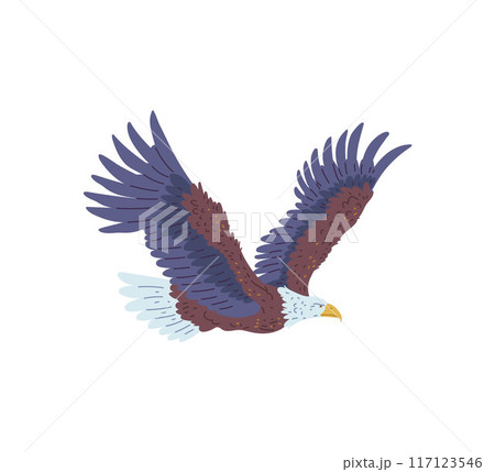 Bald eagle bird vector illustration with open wings in flight natural pose
