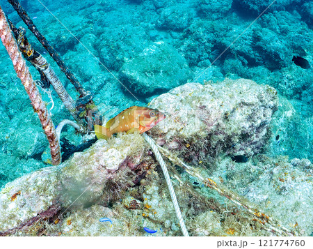 Hirizo 海灘水下洞穴中的美麗紅石斑魚(Geridae)。從靜岡縣伊豆半島加茂郡南伊豆町中木搭乘渡輪前往。