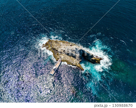 無人機拍攝的卡比島。在雙體船上進行潛水。沖繩縣島尻郡慶良間諸島座間味島