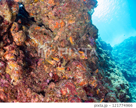 美麗的珊瑚礁和成群的熱帶魚。沖繩縣島尻郡慶良間諸島座間味島阿室島 - 2025