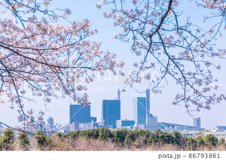 “埼玉縣”從溫暖的春日、水沼稻田眺望埼玉新都心