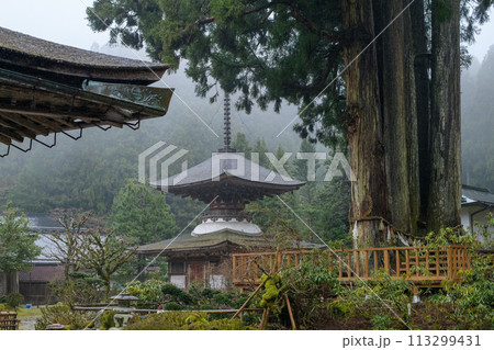高野山、雨中冒煙的金剛三昧院、國寶多寶塔、和歌山縣六本杉