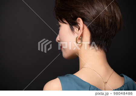 珠寶和美容廣告中日本女性側面特寫和花形耳環