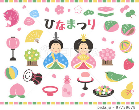 帶有兩個娃娃和配件的 Hinamatsuri 插圖