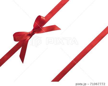 Shiny red satin ribbon bow isolated on white with copy space for your text